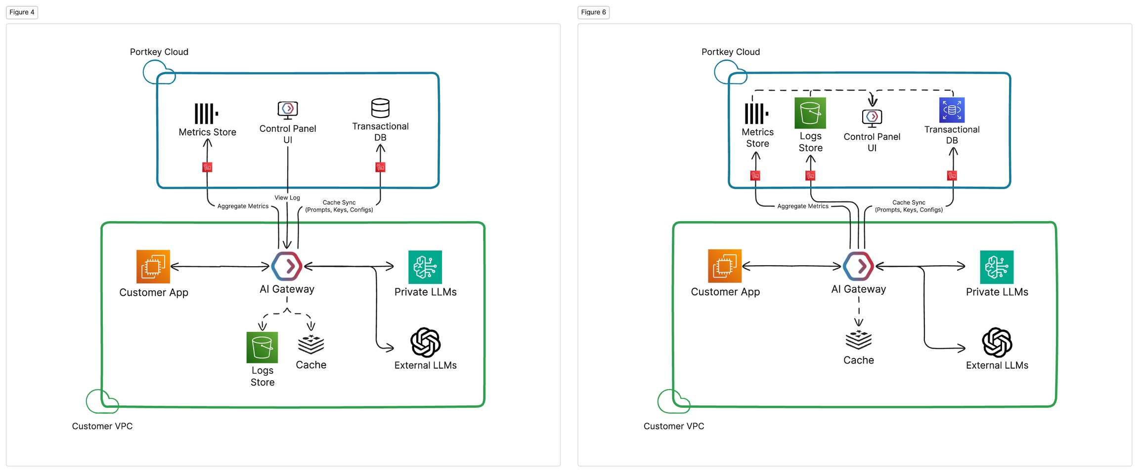 - Hybrid Deployment: The AI Gateway and data plane run in your own environment while Portkey manages the control plane, ensuring all sensitive LLM data stays within your infrastructure.